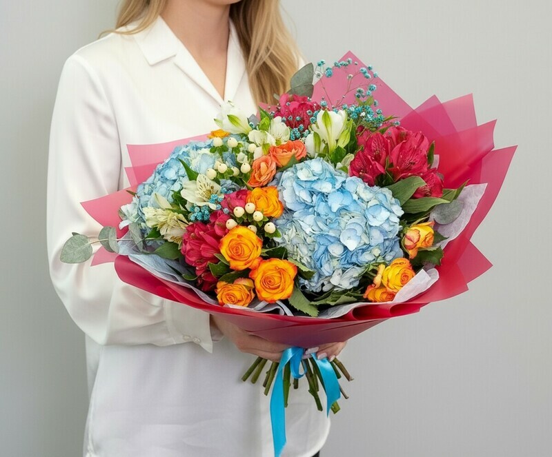 - Букет с гортензией и розами "Сентиментальность"