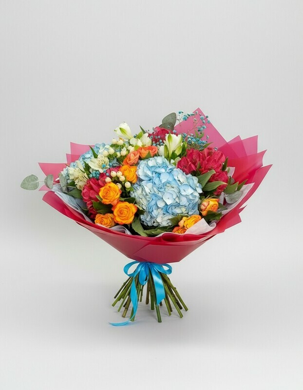 Букет с гортензией и розами "Сентиментальность"