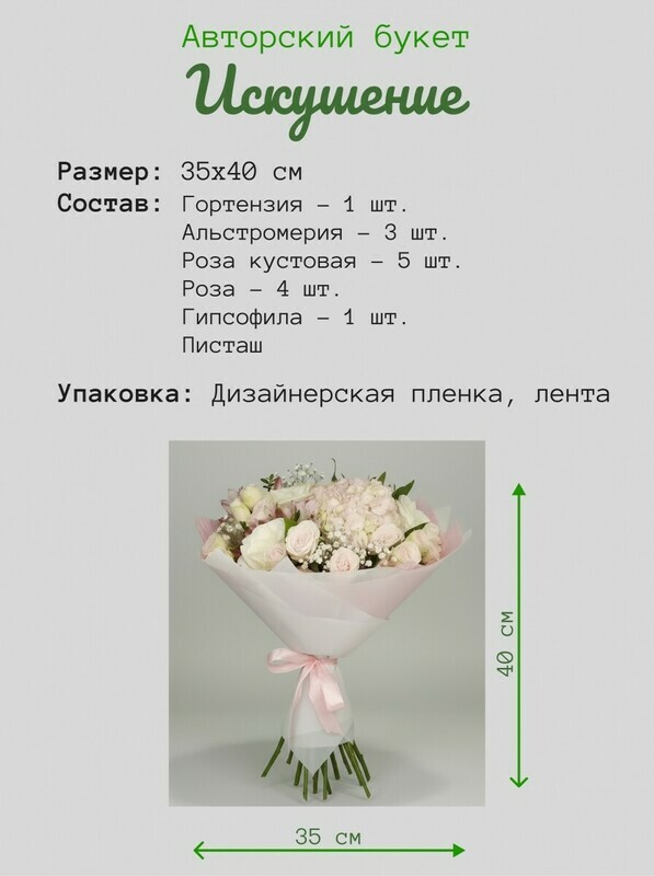 БесплатноАссортимент букетов зависит от города: Москва (внутри МКАД)