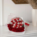 Состав: Клубника свежая отборная, клубничный шоколад, белый шоколад, шоколадный декор, кокосовая стружка, сахарный декор, розы. Все букеты упаковываются в прозрачную защитную пленку, чтобы исключить контакт ягод с окружающей средой и цветами.