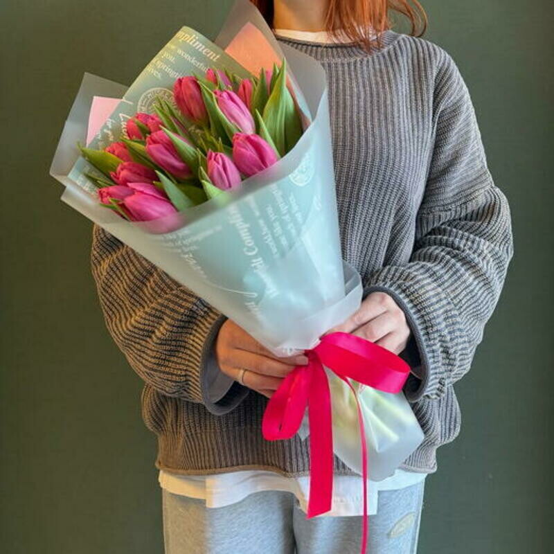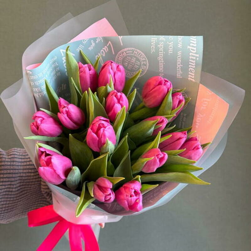 - 15 ярко-розовых тюльпанов