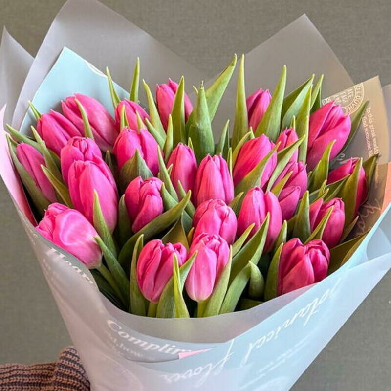 - 25 ярко-розовых тюльпанов