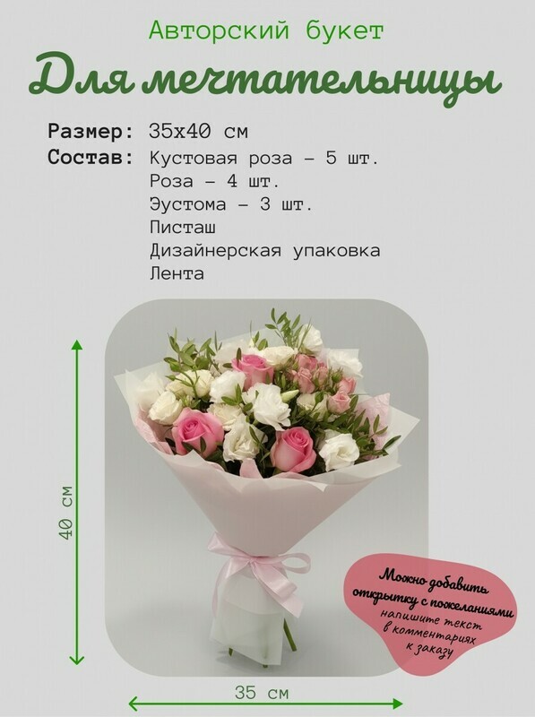 БесплатноАссортимент букетов зависит от города: Москва (внутри МКАД)