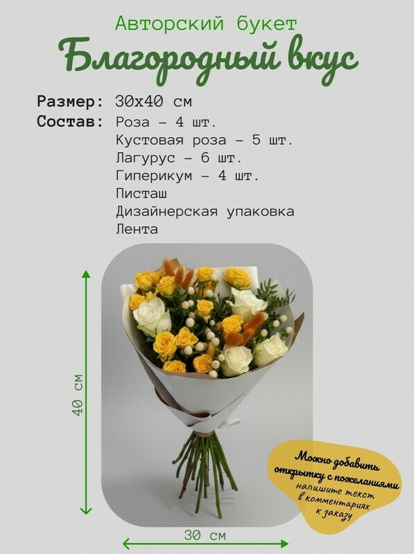 БесплатноАссортимент букетов зависит от города: Москва (внутри МКАД)