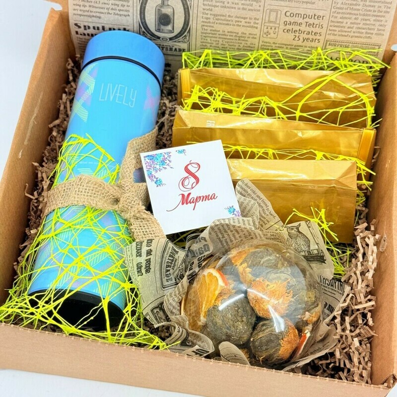 Подарочный набор элитного чая с термосом для любимых напитков – идеальный подарок для близких и коллег! Ищете красивый и универсальный подарок на Новый год, Рождество, День рождения, юбилей, 14 февраля, День влюблённых, 23 февраля, День Ангела, именины, 8 марта, День матери, День студента, День Татьяны, Татьянин день. Этот готовый подарочный набор — лучшее решение для ваших родных и друзей: мамы, папы, бабушки, дедушки, сестры, тёти, брата, а также для друга, подруги, руководителя или директора, учителя, - Универсальность – подходит для любого для любого адресата. - Стильная упаковка – красиво оформлен и производит впечатление с первого взгляда. - Готовность к вручению – не требует дополнительных затрат времени и усилий, можно сразу дарить. - Высокое качество – только проверенные и полезные товары, которые приятно получить. - Отличная идея для корпоративных подарков – подчеркнёт внимание и уважение к сотрудникам, партнёрам и руководству.