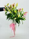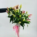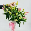 Букет ароматных лилий в зонтике. Зонт с цветами. Цветы лилии