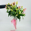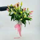 Букет ароматных лилий в зонтике. Зонт с цветами. Цветы лилии, стандартный