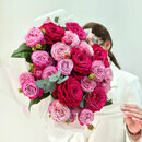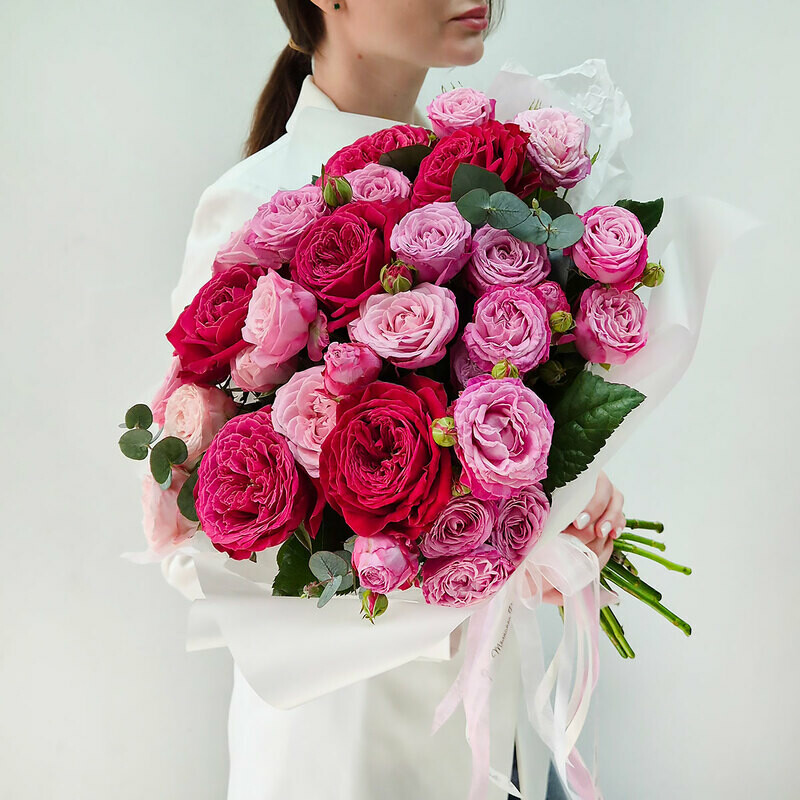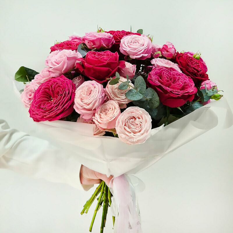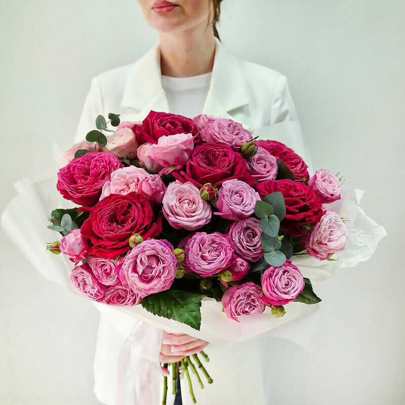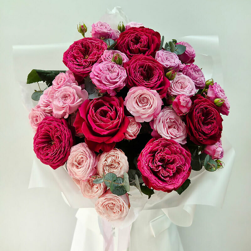 А рядом — нежная кустовая роза, которая знает, когда нужно смягчить, успокоить, согреть. Вместе они — идеальный союз двух начал, двух оттенков одной большой любви.