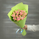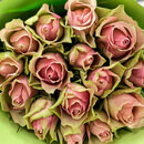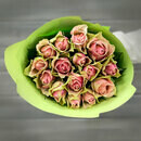 Букет из 13 зелено-розовых роз в упаковке Кения 40 см.