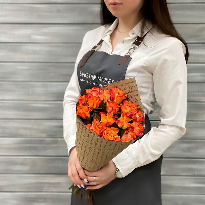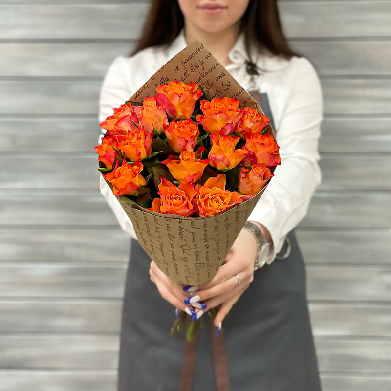 Букет из 17 оранжевых роз в крафте Кения 40 см., стандартный