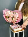 - Букет из альстромерии и французских роз и набор клубники в шоколаде 16/20 шт