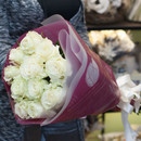 Букет из длинных, крупноголовых белых роз Эквадор премиум класса (11 шт) в подарочной упаковке.