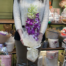 Букет из темно-розовых орхидей в подарочной упаковке.