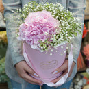 Цветочная композиция в шляпной коробке из розовой гортензии, белой гипсофилы в розовых тонах. Очень хороший подарок по любому поводу: 1 сентября, день рождения, юбилей и любой другой праздник. Так же получателем может быть любой человек как взрослая женщина, так и ребенок.