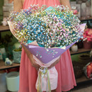 Букет из радужной гипсофилы в дизайнерской упаковке.