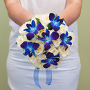 Букет невесты из белой розы, синей орхидеи дендробиум с декором