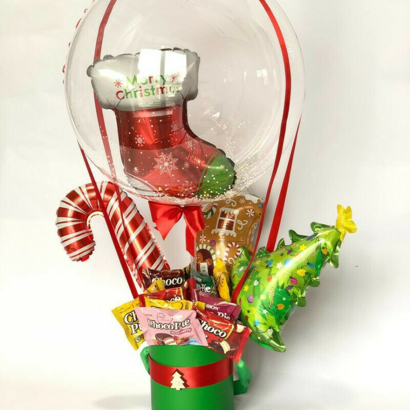 Сладкий бокс новогодний. Букет с шаром баблс, стандартный
