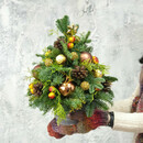 Собранная вручную композиция из разнообразной живой хвои, шишек и декора. Пушистая и наряженная елочка будет прекрасным отдельным элементом или дополнением дома или офиса. Дарите новогоднее настроение и волшебство.