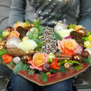 Новогоднее сердце из роз, хвои, шишек и сладостей, стандартный