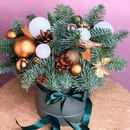 Букет новогодний в коробке из натурального нобилиса, стандартный