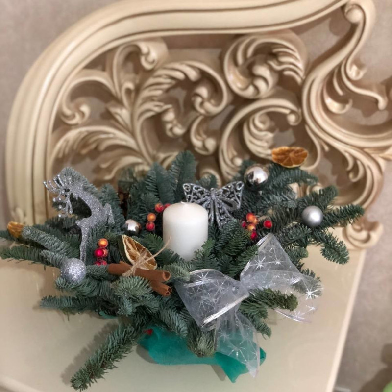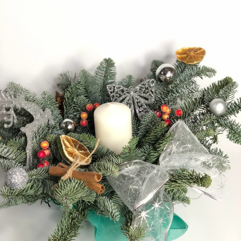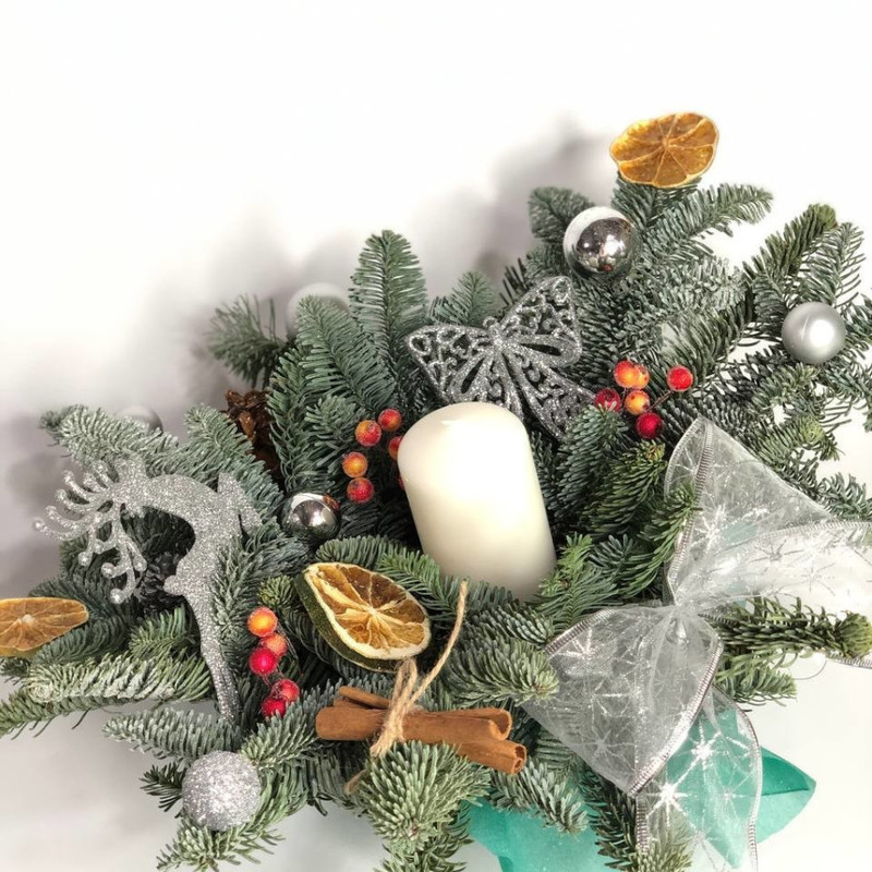 Красивая композиция из натурального нобилиса, лапника, пихты, со свечой или декором, придаст уюта и тепла новогоднему или рождественскому вечеру, создаст атмосферу праздника.