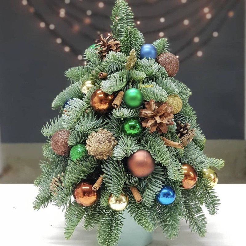 Настольная ёлочка с новогодним декором 40 см из веток нобилиса