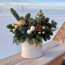 Новогодний букет в шляпной коробке из нобилиса, стандартный