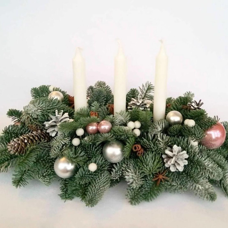 Рождественская  композиция из еловых веток нобилис со свечами, стандартный