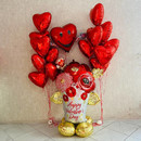 Большой, объемный шар ваза с цветами 134 см и фольгированные сердечки, которые Вы можете использовать как самостоятельную декорацию для любого праздника, так и для подарка на день рождения, 14 февраля, день влюблённых, свадьбу.