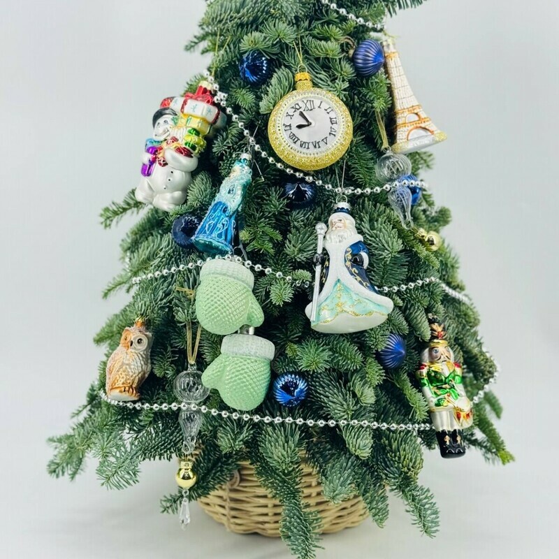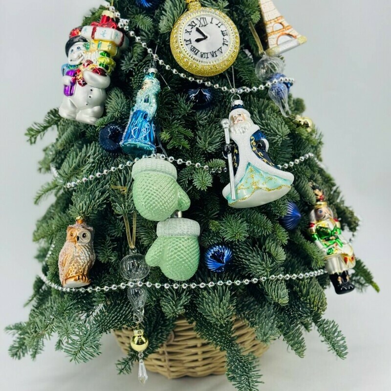 Новогодняя ёлочка ручной работы 70 см из натурального нобилиса с винтажными стеклянными игрушками
