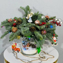 Веточки нобилиса, с ёлочными игрушками в прозрачной вазе флорариум,с тематическим, новогодним декором это стильное и эффектное оформление букета.