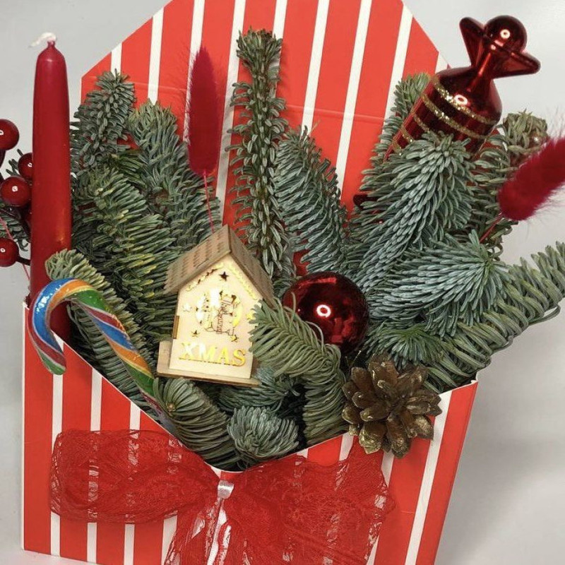 Новогодняя композиция в конверте с веточками нобилиса, стандартный