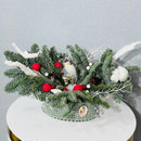 Новогодний букет в вязаном кашпо из веток нобилиса, стандартный