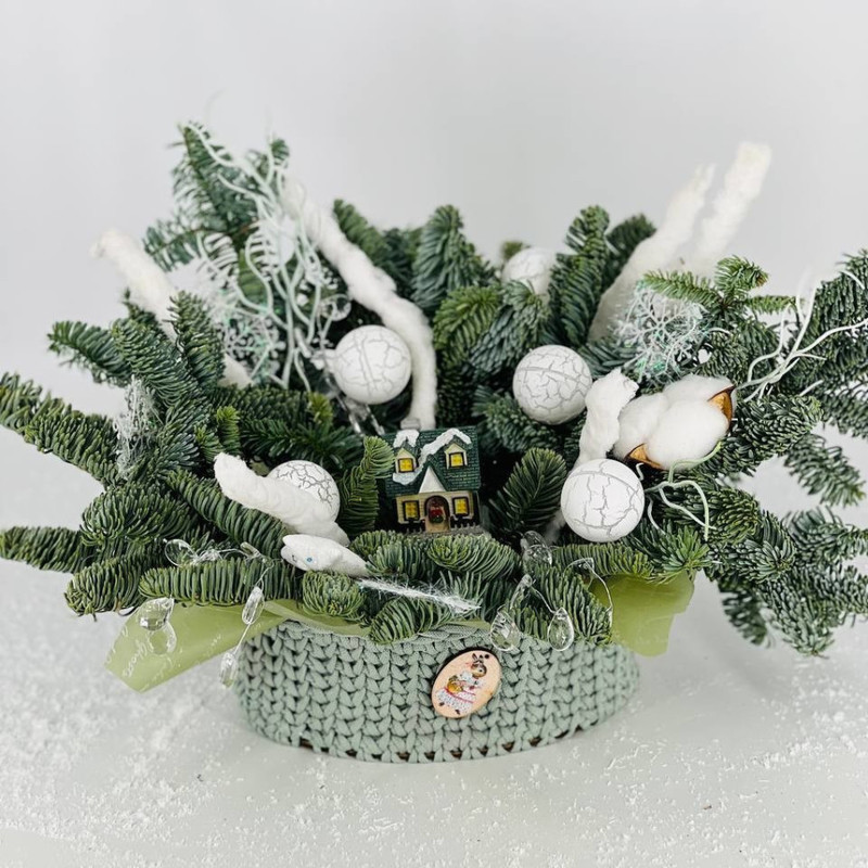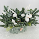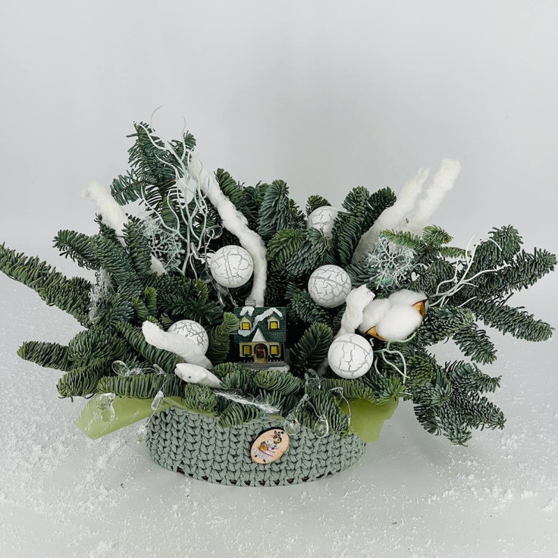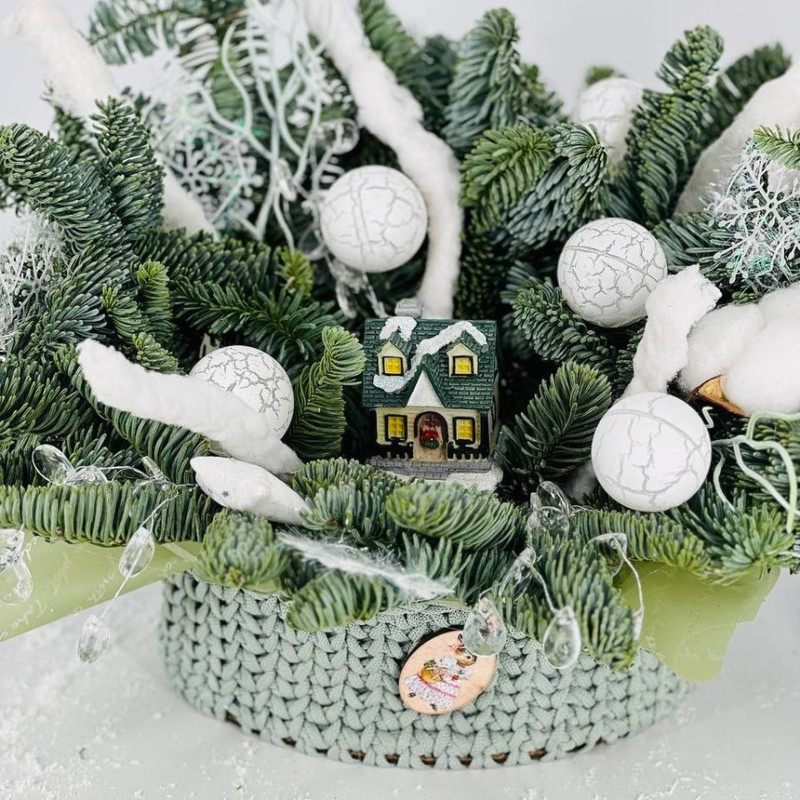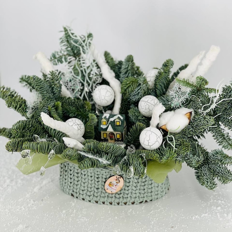Красивая композиция из живого, натурального нобилиса, лапника, пихты с декором, придаст уюта и тепла новогоднему или рождественскому вечеру, создаст атмосферу праздника.