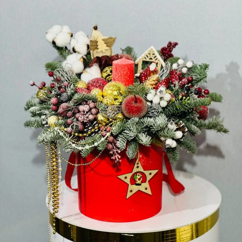 Рождественский букет из хвои нобилис в коробке, стандартный