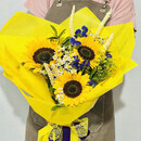 Яркий и тематический букет для линейки, с подсолнухами, колосками пшеницы, выглядит круто, празднично и незабываемо!