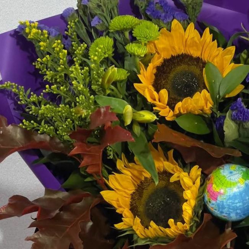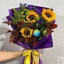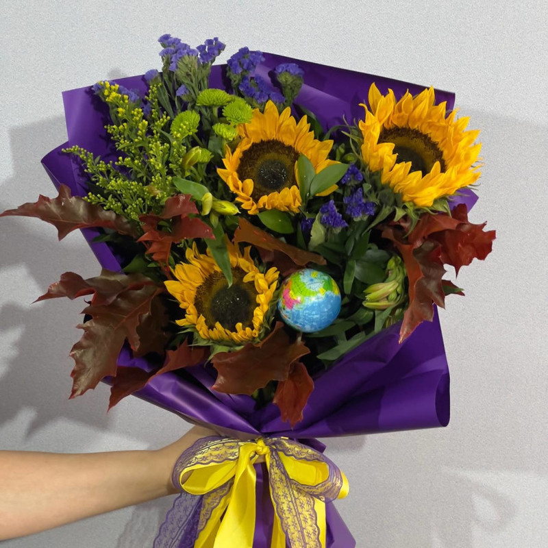 Букет из подсолнухов с глобусом для учителя, стандартный