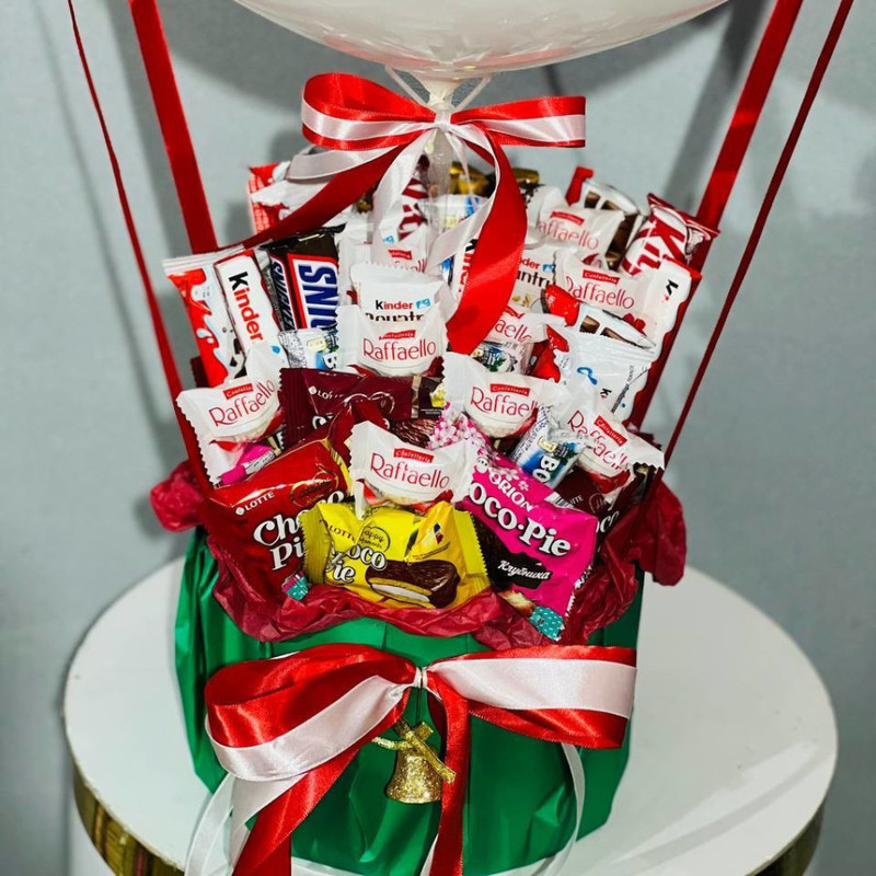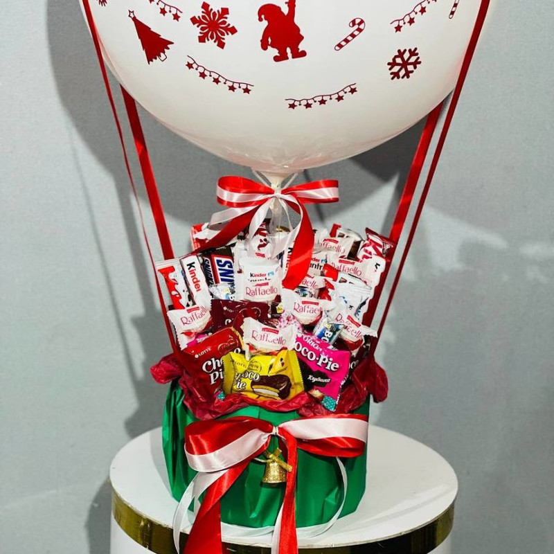 На Новый год, Рождество принято дарить сладкие подарки, конфеты, шоколадки и другие сладости. Мы предлагаем преподнести оригинальный и сладкий букет с шаром. Стильный букет, со сладким наполнением подарит получателю яркие впечатления.