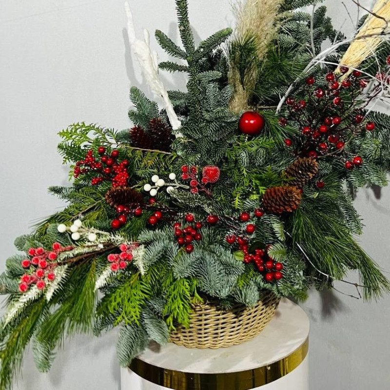 Не нужно ждать, когда вас посетит праздничное настроение – его можно создать при помощи наших зимних композиций из натурального нобилиса, с дополнением из декора.