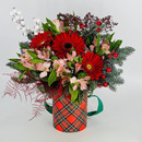 Красивая композиция из натурального нобилиса, лапника, пихты с яркими герберами и альстромериями, придаст уюта и тепла новогоднему или рождественскому вечеру, создаст атмосферу праздника.