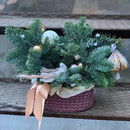 Такая композиция будет отлично смотреться в ресторане, кафе, галерее и любом другом помещении общественного пользования. Новогодняя композиция на стол из натуральной хвои, усыпанная елочными игрушками, станет идеальным дополнением к новогоднему столу.