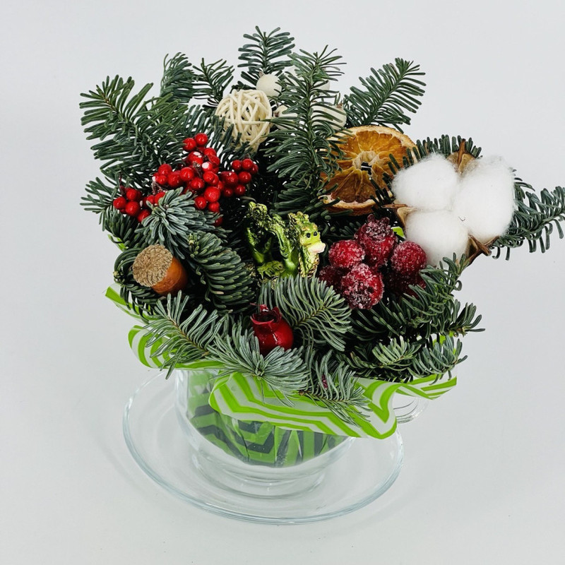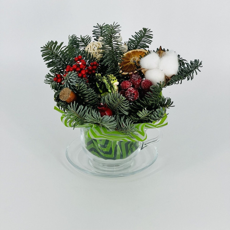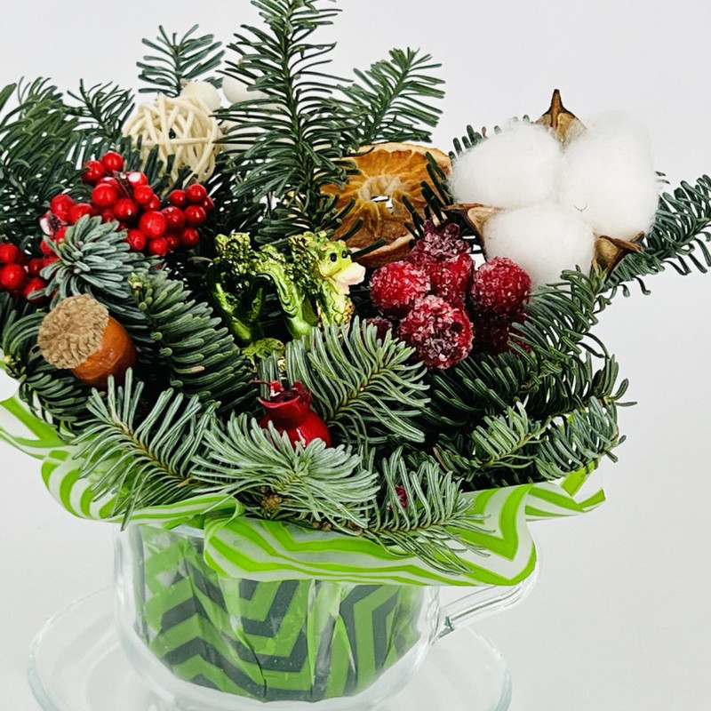 Новогодняя мини композиция в кружке из натуральной хвои нобилис, стандартный