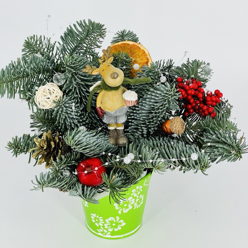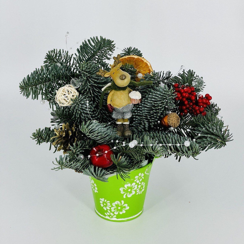 Новогодняя мини композиция из нобилиса в ведёрке на стол, стандартный