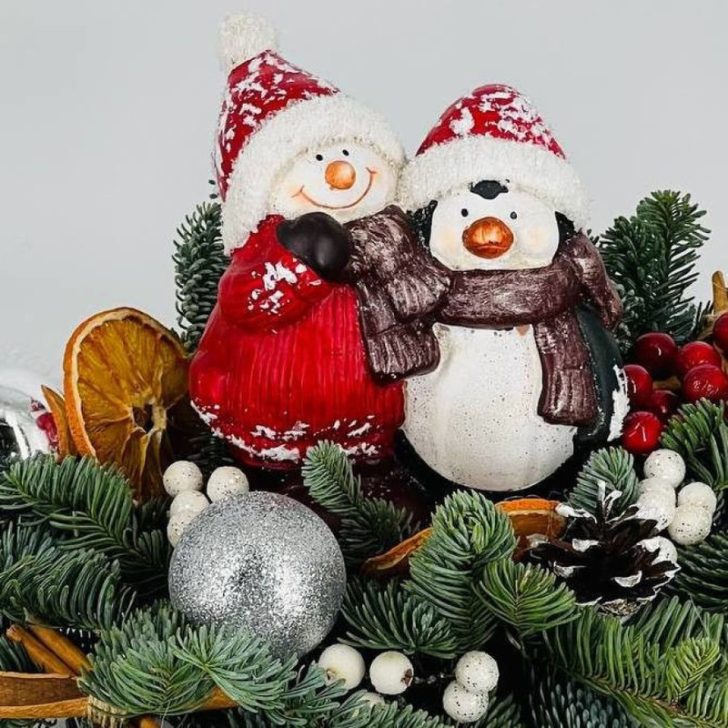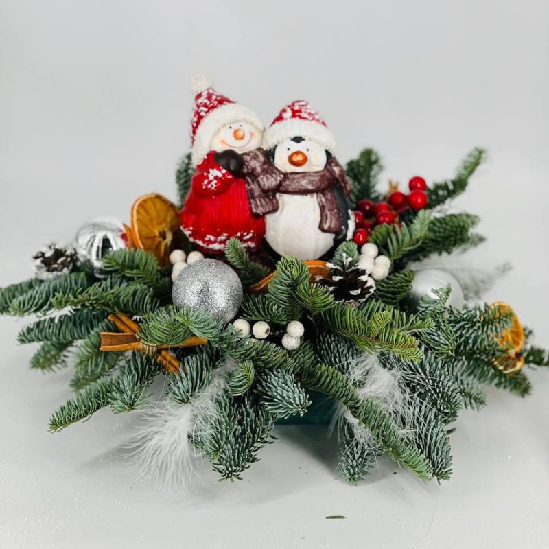 Красивая композиция из натурального нобилиса, лапника, пихты, с декором и декоративной фигуркой, придаст уюта и тепла новогоднему или рождественскому вечеру, создаст атмосферу праздника. Пихта, нобилис смотрится в композициях невероятно круто, ароматно пахнет, а иголки совершенно неострые, очень плотные и не осыпаются даже после высыхания. Такую композицию можно презентовать в качестве подарка для мамы, папы, бабушки или дедушки, для директора, руководителя, для друга или подруги. Хвойный букет можно подарить на любой праздник, будь то юбилей, день рождения, выписка из роддома, именины, крестины, повышение по службе, Новый год, Рождество или просто как комплимент. Подарив такой необычный презент, вы подарите незабываемые эмоции