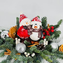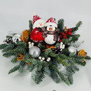 Праздничная новогодняя композиция из хвои нобилис на стол с сувениром, стандартный