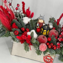 Настольная новогодняя композиция из живой хвои нобилис в деревянном кашпо с сувениром , стандартный