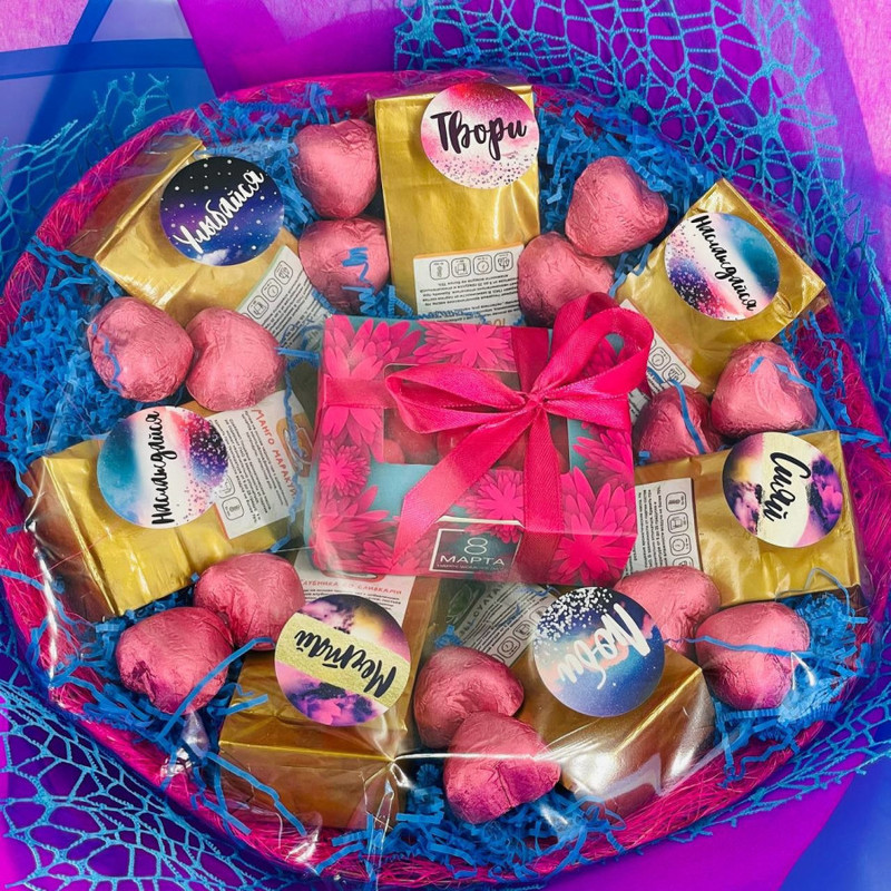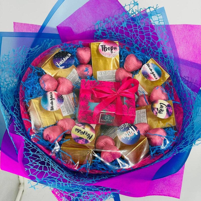 Букет из чая и шоколадных сердец подарок на 8 марта, стандартный