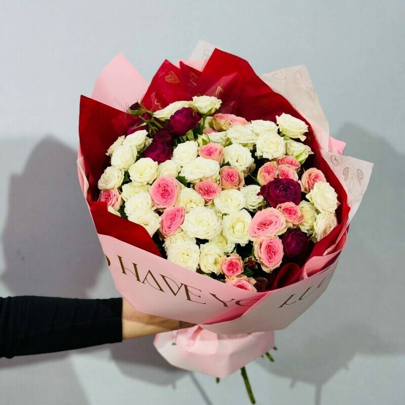Восхитительный букет изящных кустовых роз – идеальный подарок на любое торжество! Эти ароматные цветы, оформленные в стильную упаковку, станут изысканным сюрпризом для вашей мамы, любимой девушки, учителя или дочки. Подарите красоту и нежность в день рождения, юбилей, именины, День Татьяны, выписку из роддома или на такие важные даты, как 8 Марта и 14 Февраля, Пасху. Вашему близкому человеку будет приятно ощутить весь восторг и тепло вашего внимания, укутанные в каждом бутоне этого элегантного букета!