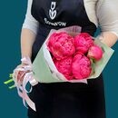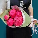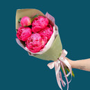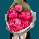 Небольшой, но блистательно-яркий букет, оформленный в салатовый конверт с пышными бутонами распускающихся пионов сорта Корал Шарм, вызовут восторг и нежную улыбку!