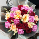 Букет из 25 разноцветных роз с пшеницей, стандартный